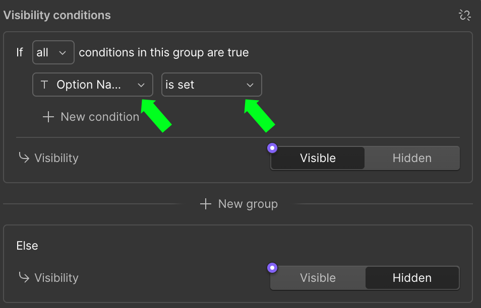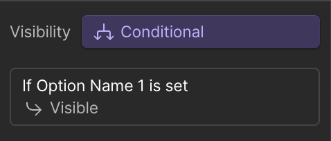 2nd Label & Dropdown: set visibility condition to “Option Name 2” is set