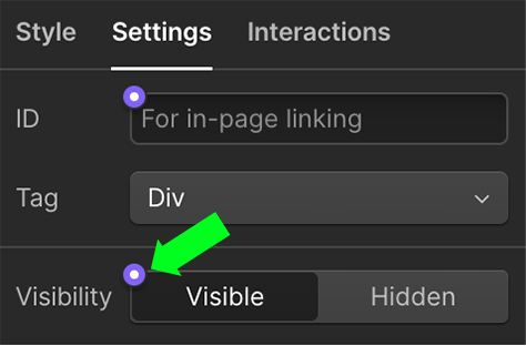 Then, go to the layer settings panel in the right hand sidebar and click on the purple dot in the Visibility section.