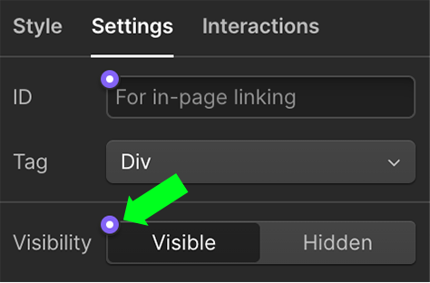 Wrap the tabs and label in a div block and go to the layer settings and click the purple dot in the Visibility section and set it to only be visible if the “Personalized products?” switch is on.