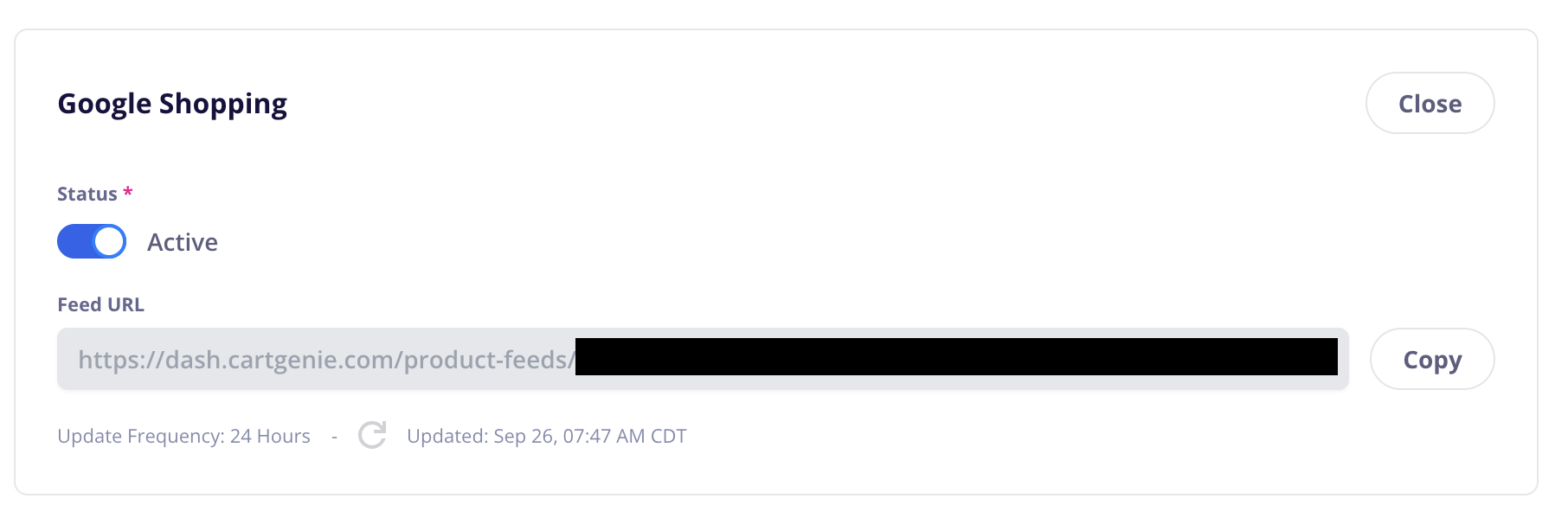 You’ll see a Feed URL here which you’ll use in step 3 to send your products to Google