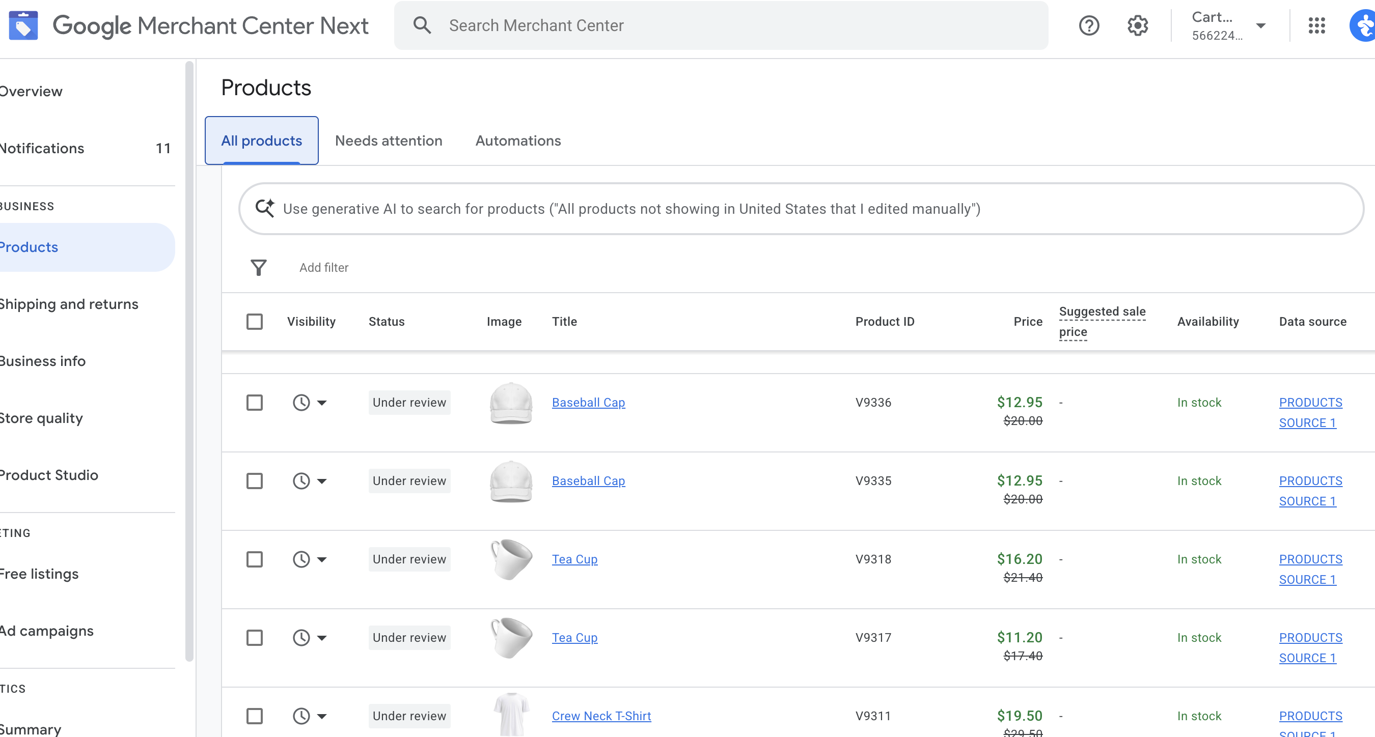 Google Merchant Center (GMC) hosts your product catalog for Google products such as Shopping ads, Performance Max, free product listings, YouTube, and Discover. The better your data here, the more visibility and control you get in campaigns.