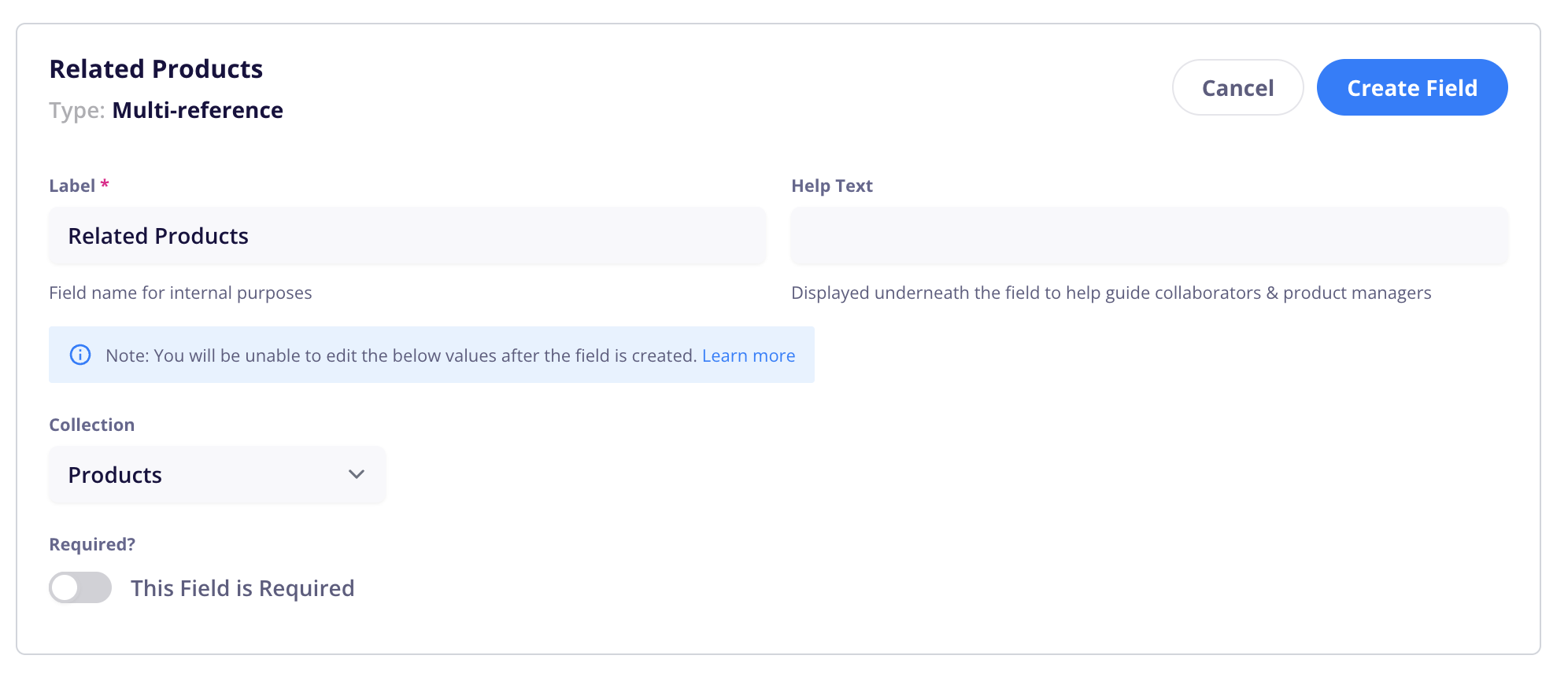 Using your new multi-reference field, select the products you want to feature on the page as related.