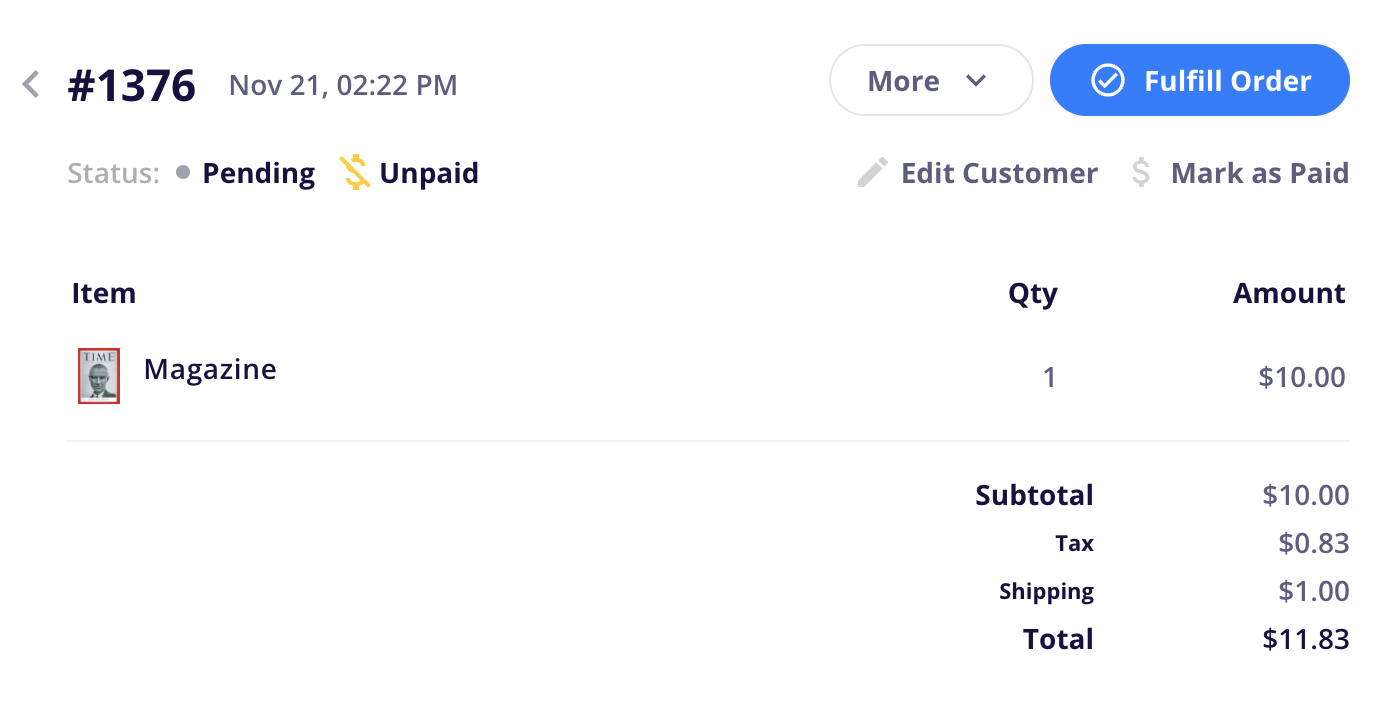 At this point, the order status will be changed to “Unfulfilled” (if not already fulfilled) and payment status will be changed to “Paid". You are then free to fulfill the order as you normally would.