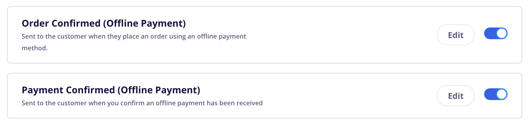 The Payment Confirmed (Offline Payment) email will be sent to customers once you manually confirm payment in CartGenie.