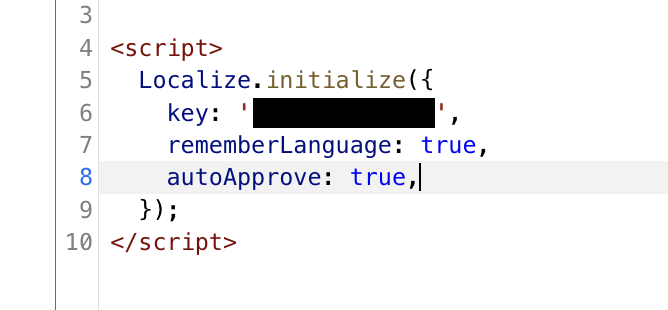 For the full snippet reference, see Localize's Quickstart for Web.